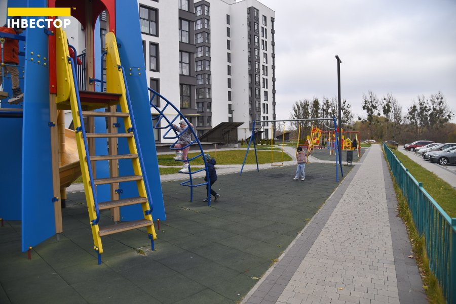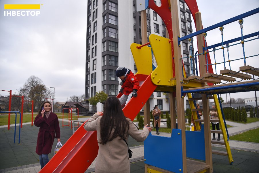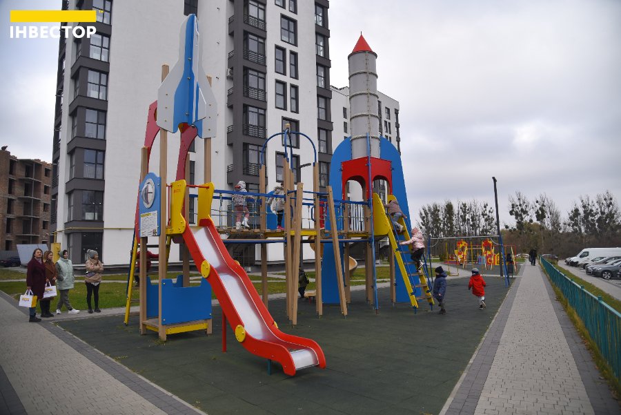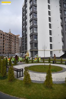 Біля готових будинків подбали про якісний благоустрій. Тут є сучасний дитячий майданчик з різноманітними гірками та ігровими комплексами, є й продуктові магазини. Усю територію обгородили та створили паркомісця для кожного мешканця житлового комплексу.