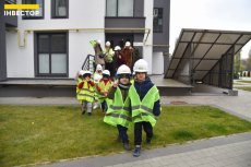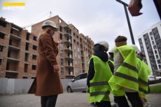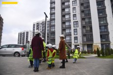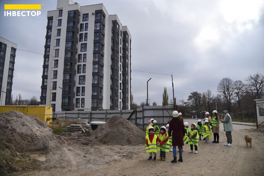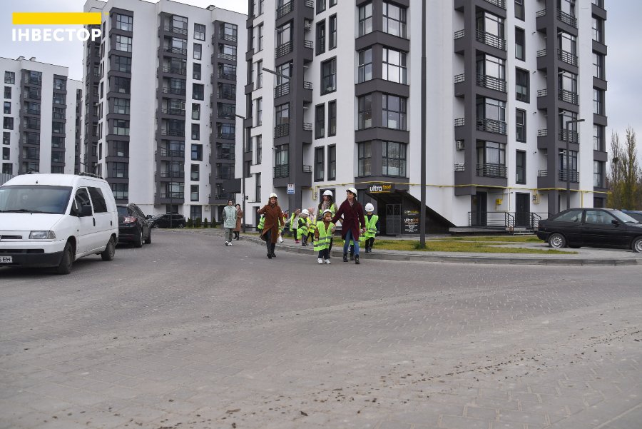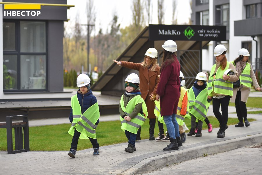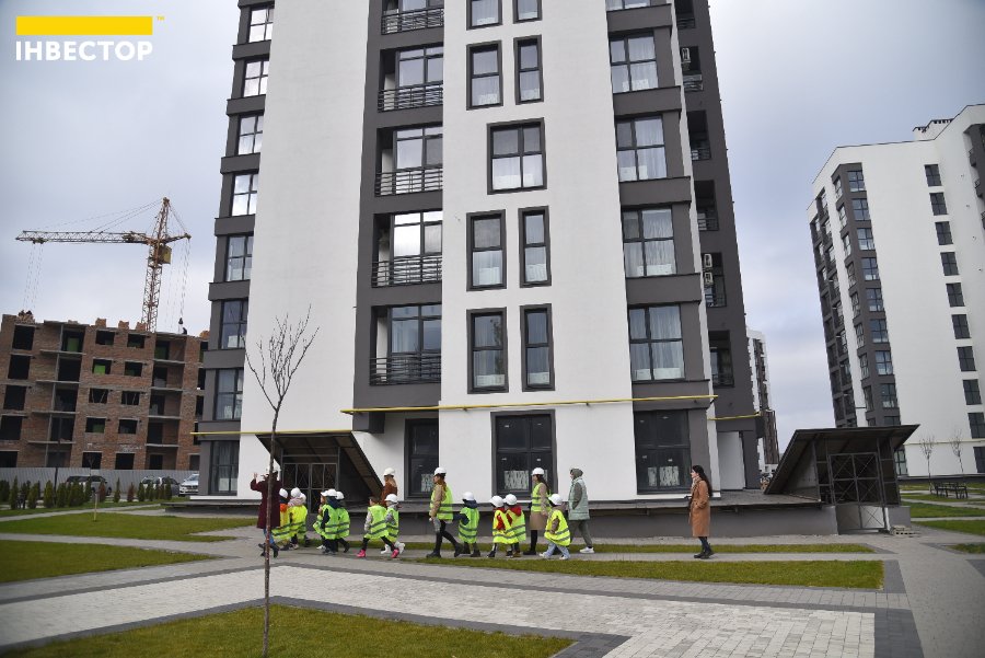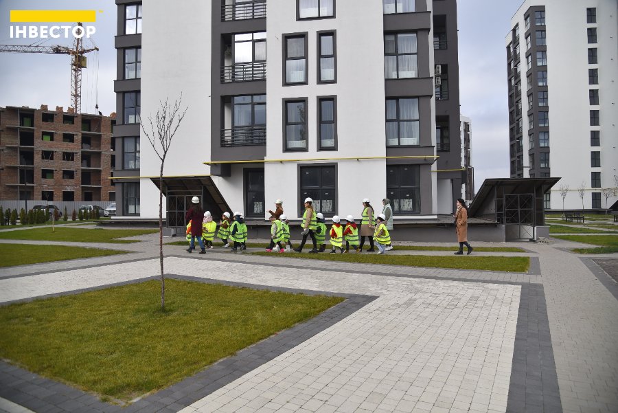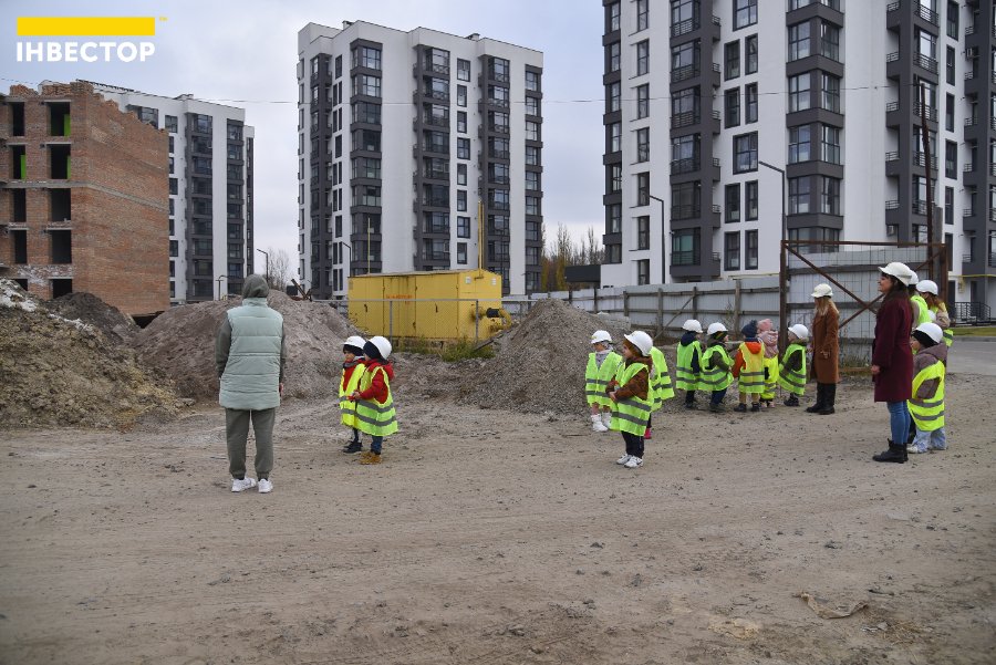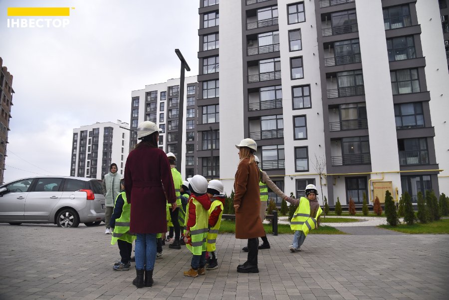Великий паркан відділяє територію, де ще проводять будівельні роботи, від будинків, де вже живуть мешканці. Дітям показали, як виглядають «голі» стіни на початку будівництва та якими гарними вони стають після завершення усіх робіт.