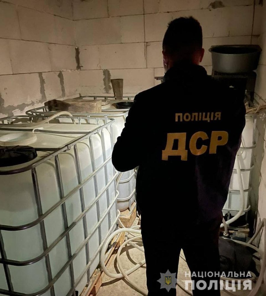 – обладнання для змішування, фільтрації та розливу фальсифікованої продукції, тару (пластикові каністри та бочки різною ємкістю, пуста підготовлена скляна тара);