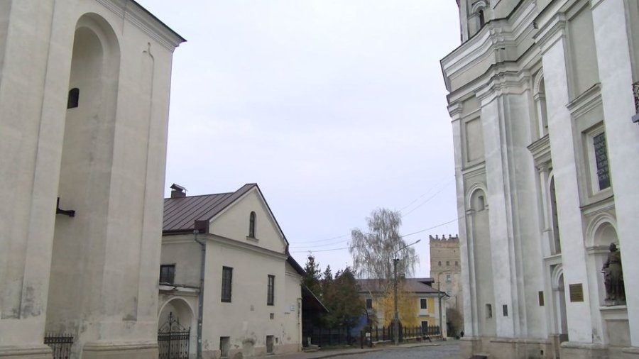 Дзвіниця, яка знаходиться навпроти костелу Петра і Павла, належить не до нього. Вона залишилася від Кафедрального собору Святої Трійці, археологічні розкопки якого нині тривають, — розповідає археолог Віктор Баюк. Він припускає, що при будівництві костелу Петра і Павла будівельники та архітектори орієнтувалися на аналог, який на середину XVII століття ще існував — кафедральний собор Святої Трійці.