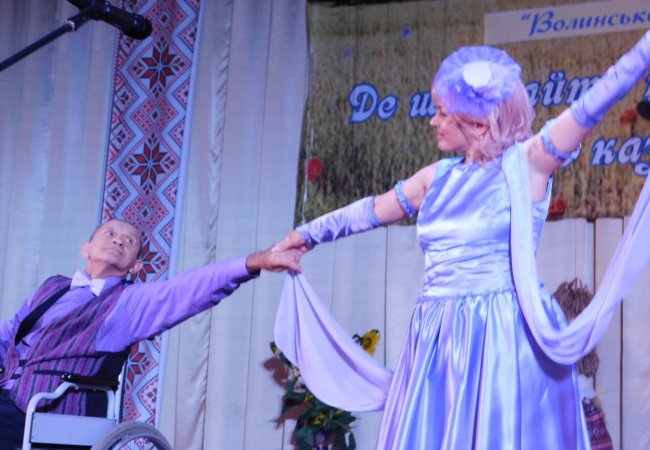 Підопічний Горохівського психоневрологічного інтернату Володимир Лютіков після важкої хвороби зміг пересісти на інвалідний візок, щоб затанцювати на сцені із директоркою закладу.