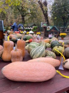 "Гарбузових у моїй колекції понад сімдесят.Щоб убезпечити гарбузове перезапилення, я вирощую солодкі сорти виключно біля солодких, а сквоші біля сквошів. Сквош - це сорти, які мають смак подібні до картоплі та готуються за картопляними рецептами. Вони повинні вирощуватися окремо, бо якщо вони перезапиляться із солодкими, то солодкі втратять свій солод. Тобто неможливо посадити щороку все зразу. А щоб убезпечити перезапилення, я свої сорти саджу на різних ділянках і вони розташовані далеко один від одного і, знаєте, мені дуже пощастило. Наші сусіди по городах абсолютно нічого не вирощують, бо якби сусідки вирощували кормові гарбузи, то в мене все перезапилювалося», - розповідає селекціонерка.