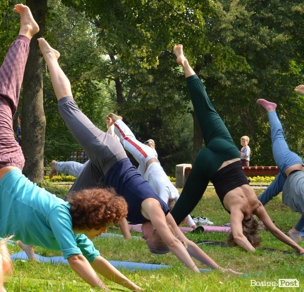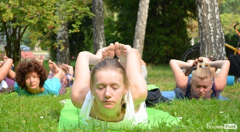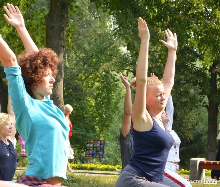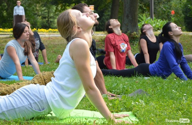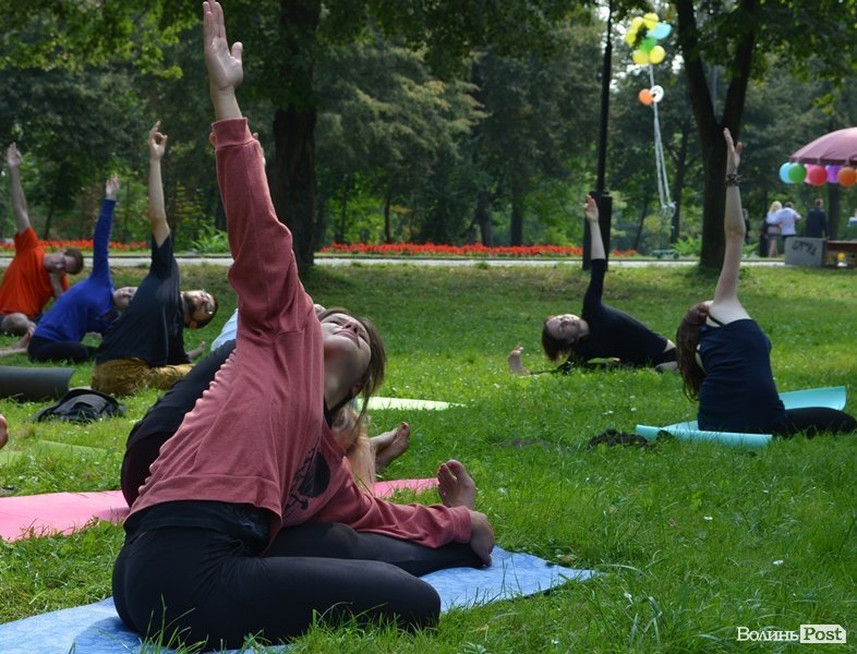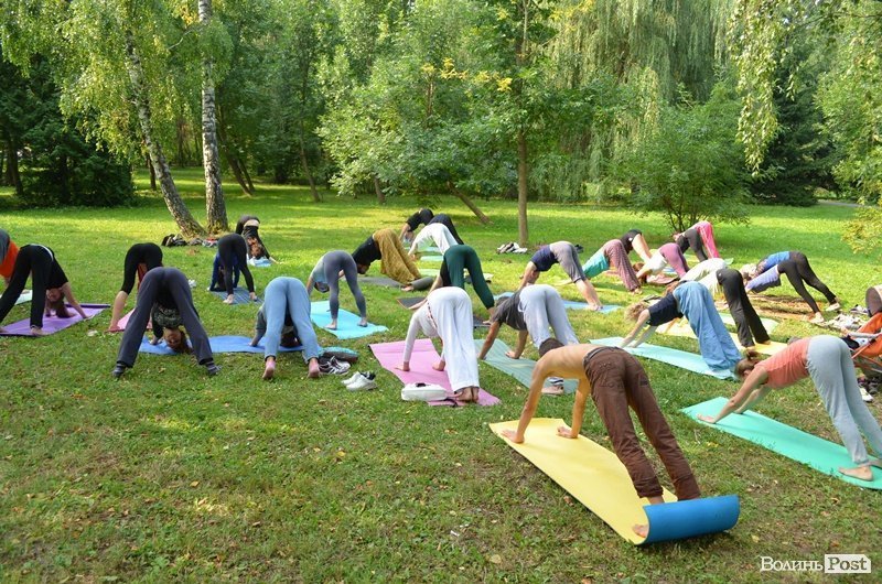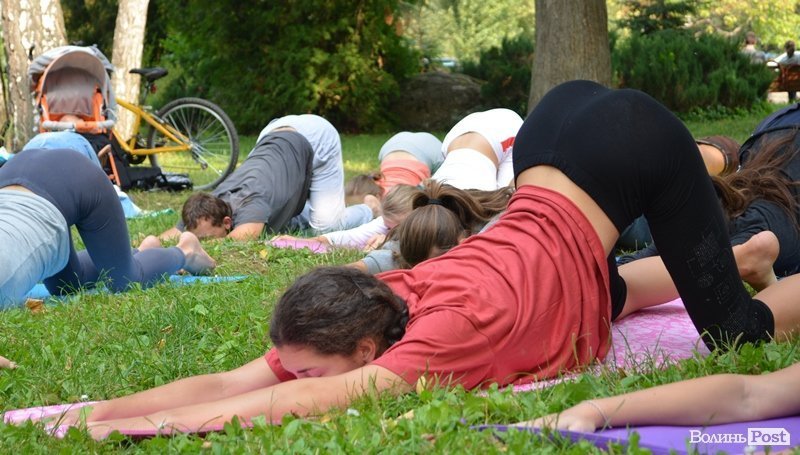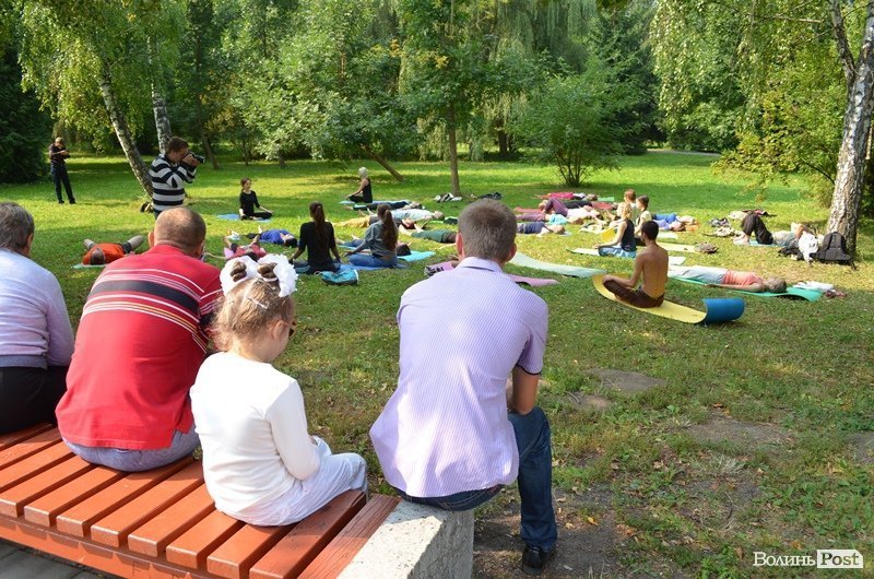 Відкритті заняття на повітрі йогою вже не дивина для Луцька. Нагадаємо, що масовий відкритий сеанс йоги вже відбувався в парку двічі: на початку літа у червні та під час фестивалю «Бандерштат».