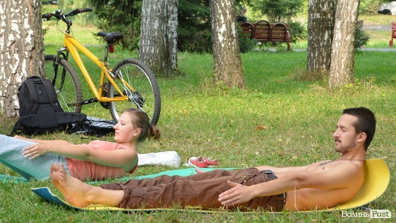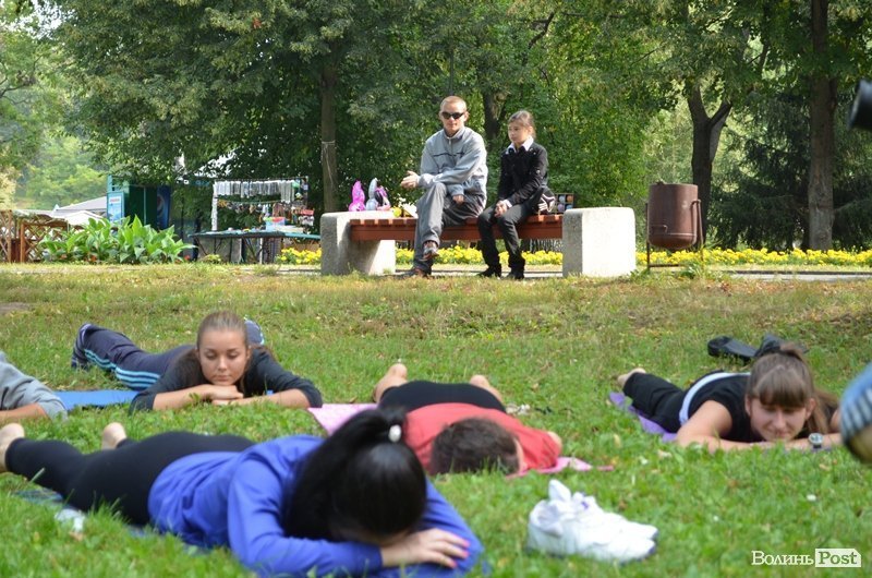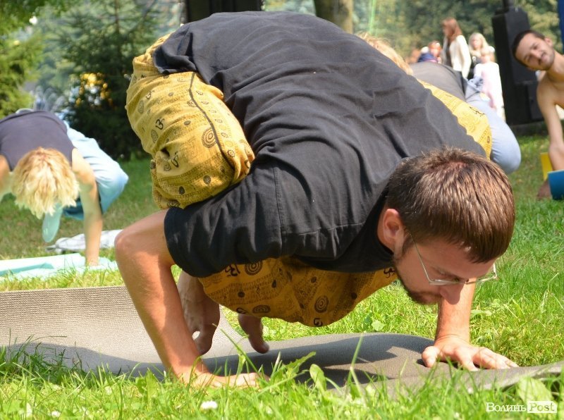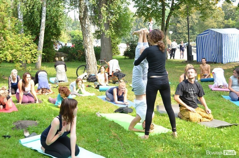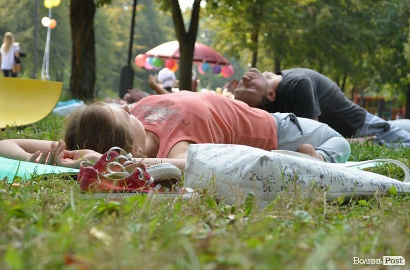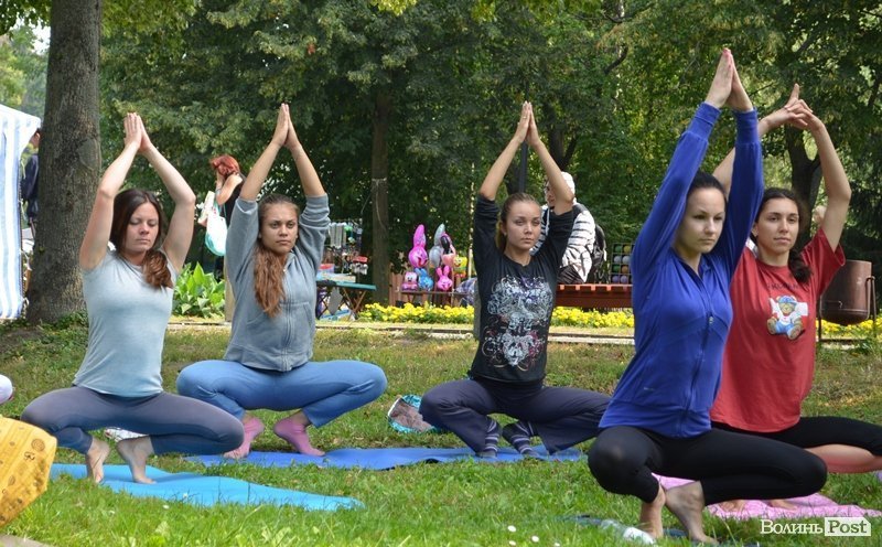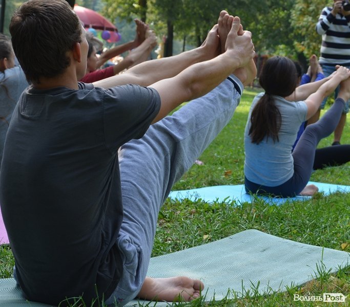 Відкритті заняття на повітрі йогою вже не дивина для Луцька. Нагадаємо, що масовий відкритий сеанс йоги вже відбувався в парку двічі: на початку літа у червні та під час фестивалю «Бандерштат».