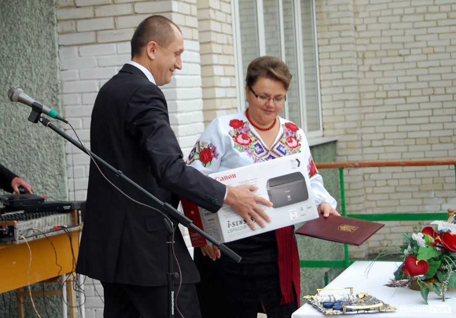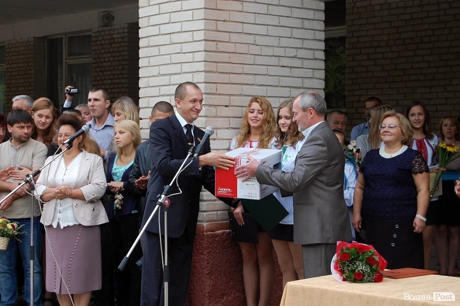 Крім того, луцькі обранці під час урочистої лінійки вручили директору школи подарунок – оргтехніку.