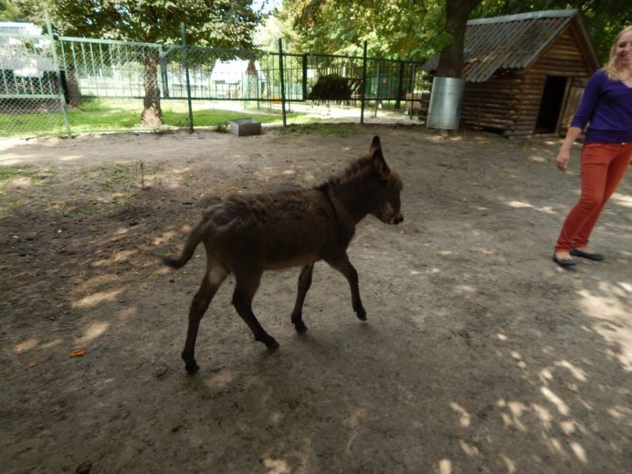 Віслючок Лєра. Первісток у новоствореної пари віслюків, яких привезли до нас минулого року. Це наша Лєра - через кілька годин після народження. Вона ще невпевнено тримається на ніжках.