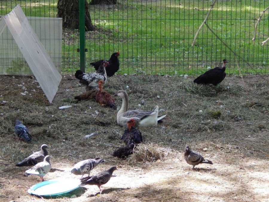 Дуже шкода, але зоопарківські дорослі гуси Боню не прийняли. Зараз вона - у вольєрі з декоративними курочками.