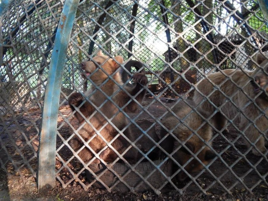 Улюблене місце ведмедиків – перекриття під дахом вольєру. Щоправда, тоді їх мама Маша дуже переживає. І кличе своїх неслухняних малюків характерним «ухканням».