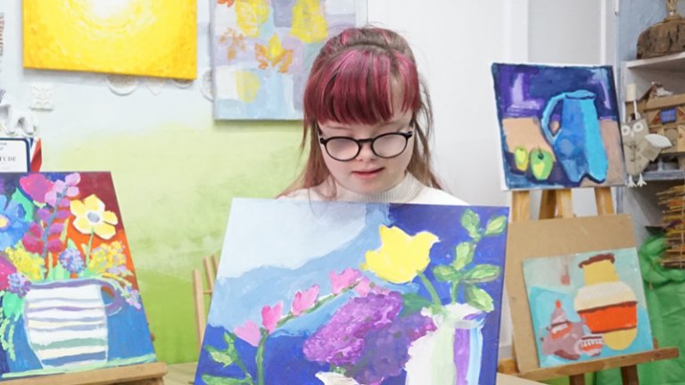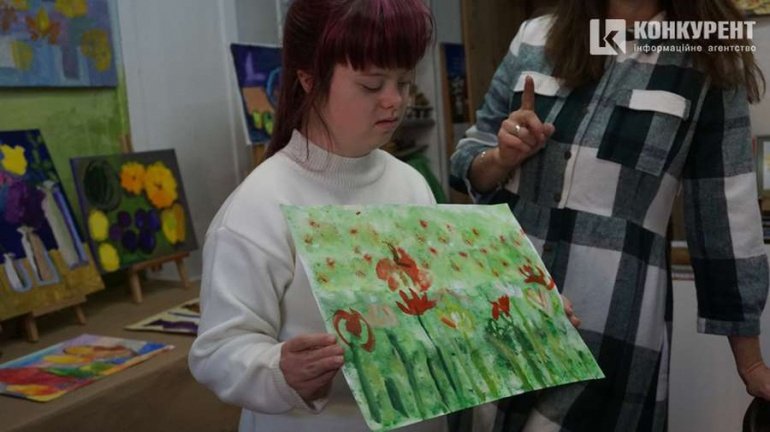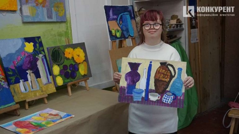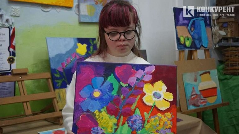 Уляна – крута. Роботи дівчинки, яка страждає синдромом Дауна, справді вражають: вона малює мелодію вітру – назву картини, до слова, придумала сама, чуттєвий портрет своєї мами, сліпуче сонце і сонце, яке ховається за обрій. І найбільше любить малювати природу.