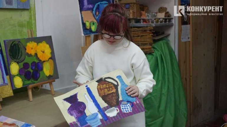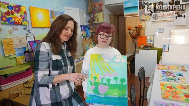 За невеликим столом у студії, де «сонячна» лучанка ось уже два роки займається малюванням, зібралися її найрідніші та небайдужі до її долі люди.