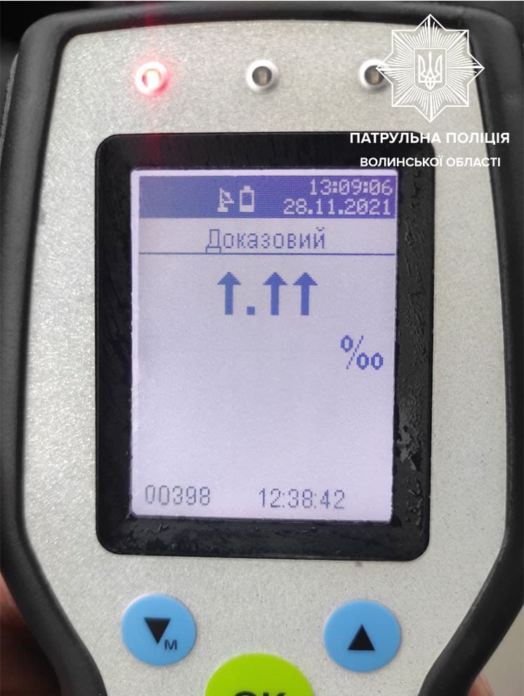 Окрім цього поліцейські виявили в нього ознаки алкогольного сп’яніння. Останній пройшов огляд на визначення стану сп’яніння на місці зупинки транспортного засобу за допомогою спеціального технічного засобу, який після проведення тесту показав в небо.