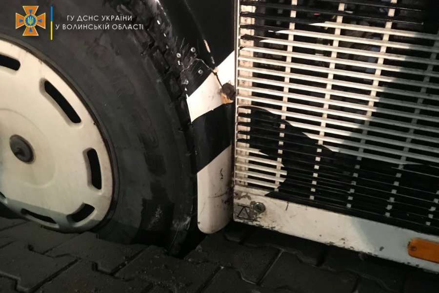 30 листопада о 02:53 до Служби 101 надійшло повідомлення про те, що у Нововолинську автобус в`їхав колесом у яму.