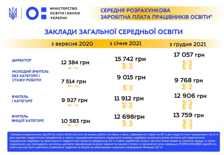 Нагадаємо, це вже друге підвищення зарплати працівників шкіл за 2021 рік. З 1 січня 2021 року зарплати зросли на 20%.
