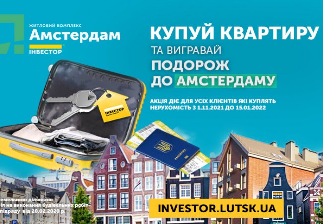 Усі клієнти, які придбають квартиру чи комерційне приміщення в ЖК “Амстердам” до 15 січня, стануть учасниками розіграшу подорожі на двох до столиці Нідерландів.