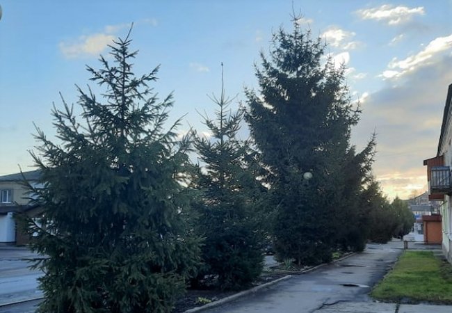 Йдеться про вулицю Богдана Хмельницького, де вздовж тротуару ростуть ялини.