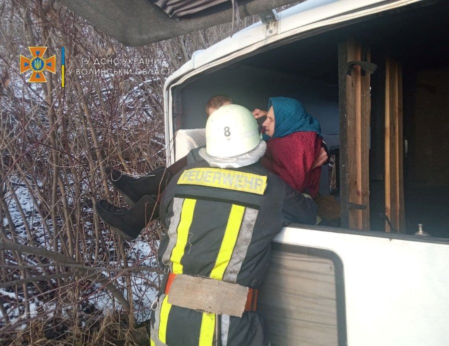 Волинські рятувальники «вирізали» двох пасажирів з деформованого після ДТП мікроавтобуса. ФОТО