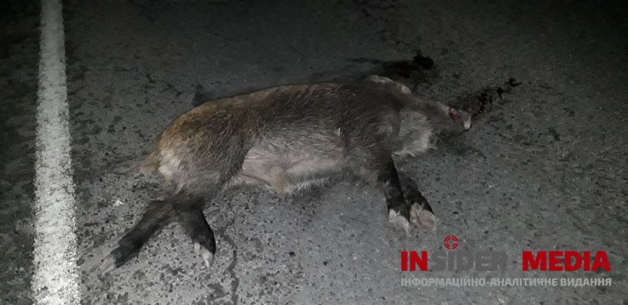 На трасі Луцьк – Ковель автомобіль збив дикого кабана. ФОТО 18+