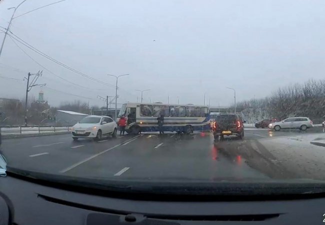 У Луцьку на вулиці Ківерцівській зранку 10 грудня рейсовий автобусс зіткнувся з легковиком.