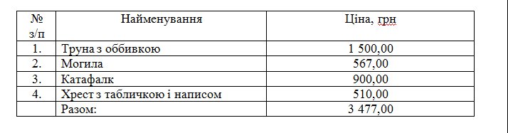 Так, за даними директора підприємства, найдешевше поховання померлого у Луцьку обійдеться майже у 3500 гривень. Йдеться, зокрема, про придбання труни, послуги катафалка, хрест із табличкою і написом та саму могилу.