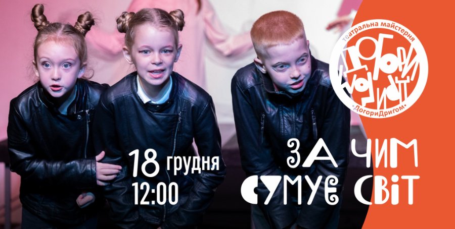 12.00 — вистава середньої студійної групи театральної майстерні «ДогориДриґом» «ЗА ЧИМ СУМУЄ СВІТ».
