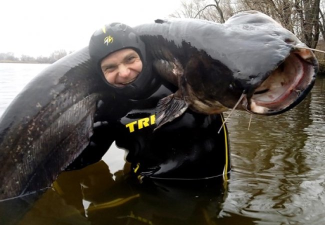 Житель міста Дніпро Олександр Громадський під час підводного полювання впіймав гігантського сома вагою майже 50 кілограмів.