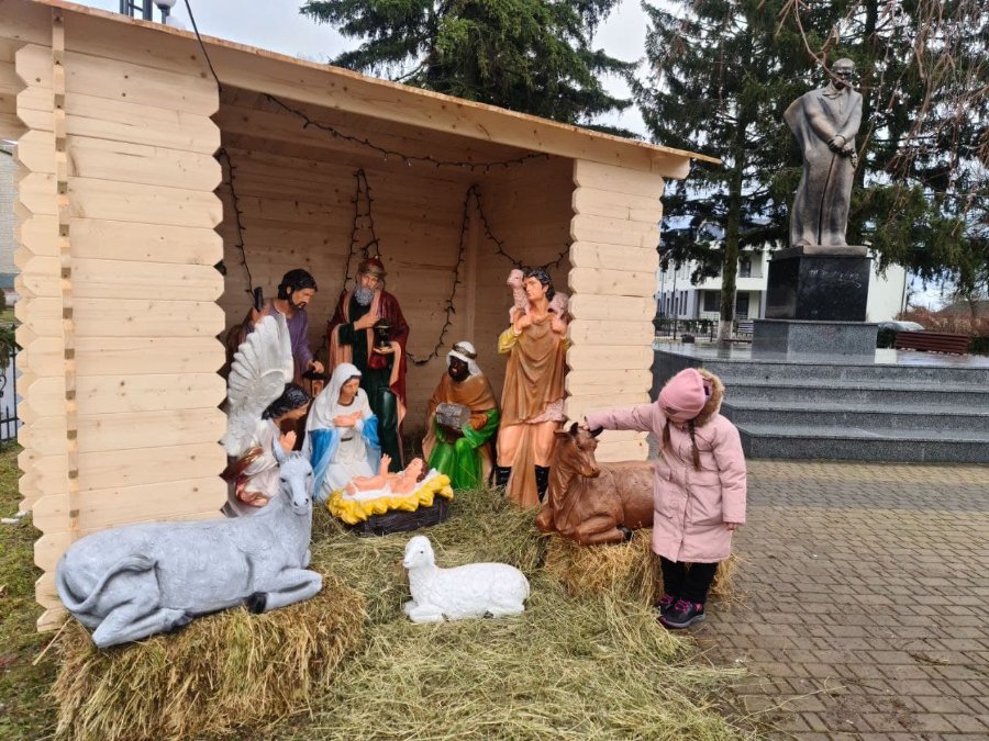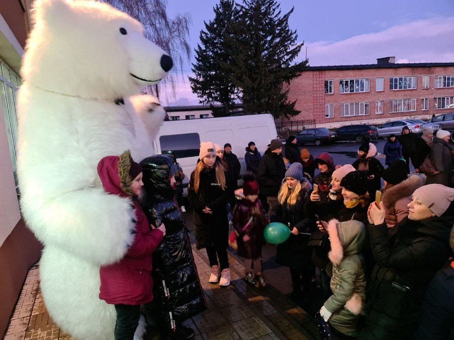 Для дітей працівники культури підготували майстер класи із виготовлення новорічних листівок та ялинкових прикрас. Розважав публіку величезний білий ведмідь. У Будинку культури облаштували фотозону із затишним кріслом та сяючими ялинками, поруч, на площі, встановили великий різдвяний вертеп із фігурами реалістичних розмірів.