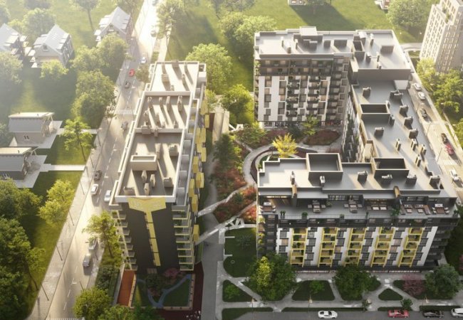 Житловий комплекс має квартири від 40 до 154 м3. Тож ви маєте змогу обрати 1, 2,3 чи навіть дворівневу квартиру. Всі квартири мають розумне планування, великі енергоефективні вікна та індивідуальне опалення. Також є підземний паркінг та сучасний дитячий майданчик.