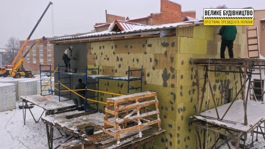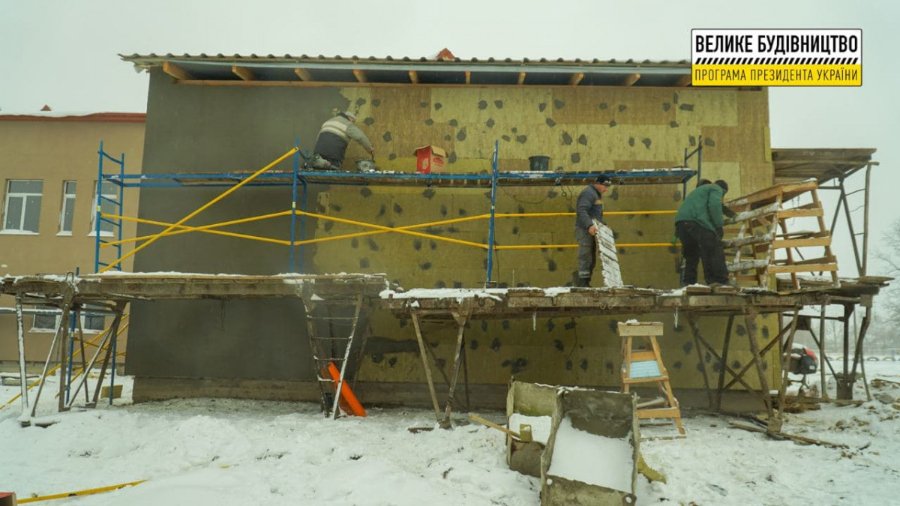 Наразі будівельники встановлюють конструкцію для дахового покриття в приміщенні, що призначене для проведення змагань. Також у тому ж залі передбачені трибуни для глядачів. Окрім того, всередині спортивного закладу майстри працюють над внутрішніми ремонтними роботами, а ззовні – утеплюють будівлю та оздоблюють її фасад.