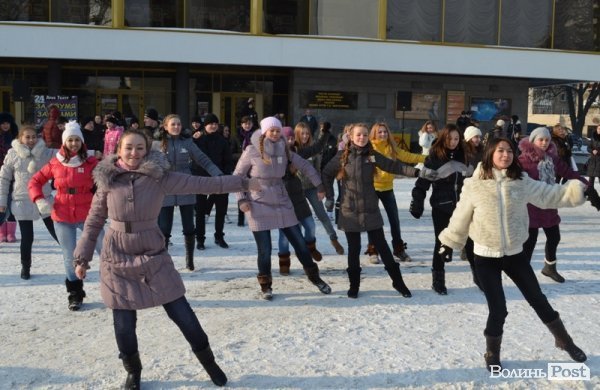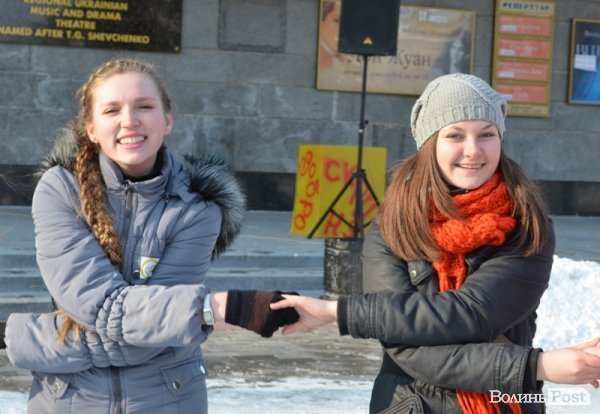 В рамках відзначення Міжнародного дня спонтанного прояву доброти на Театральному майдані Луцька молодь танцювала, обіймалась та закликала перехожих творити хороші справи.