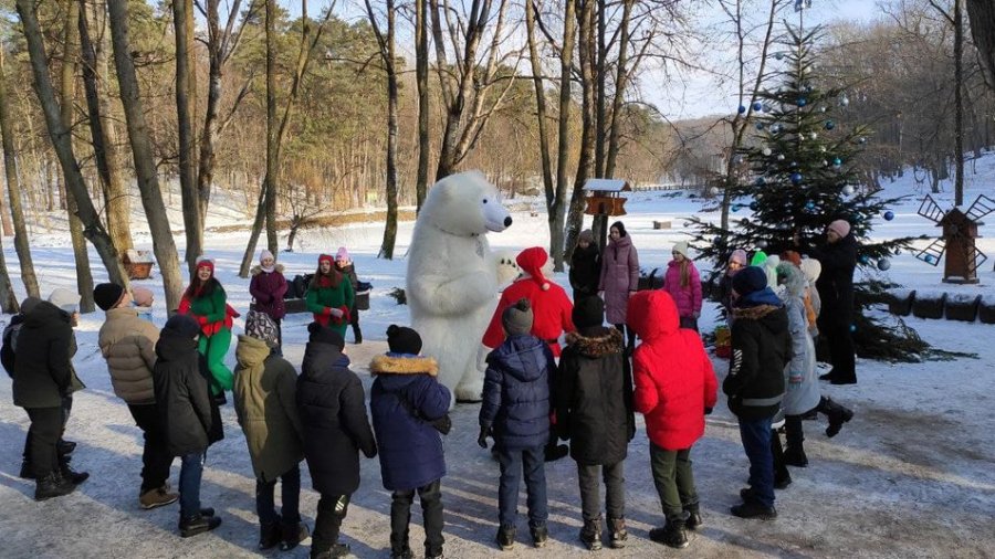 Юрбу дітей біля новорічної ялинки зустрічали ельфи. Поруч з резиденцією Санти діти та казкові герої співали, танцювали та водили хороводи.