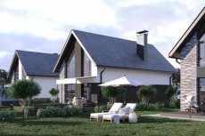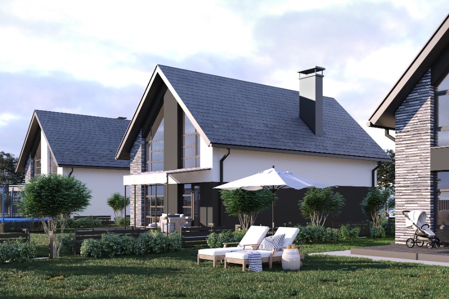 Особливість дизайну цих котеджів – просторі кімнати. На другому поверсі простору додає висота кімнат (найвища точка - більше 3 метрів) та великі панорамні вікна.
