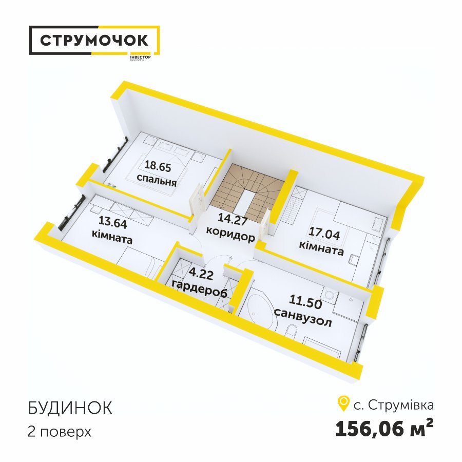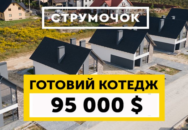 У ЖК «Струмочок» (с. Струмівка) продають повністю збудований двоповерховий котедж. Його площа - 156 м2. В ціну також входить 7,5 соток власної землі поруч із будинком.