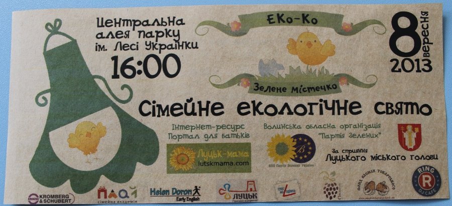 У Луцьку пройде сімейне свято «Еко-Ко»: тут демонструватимуть «нешкідливий побут», читатимуть книги з мамою-книголюбом, продаватимуть еко-вироби ручної роботи.