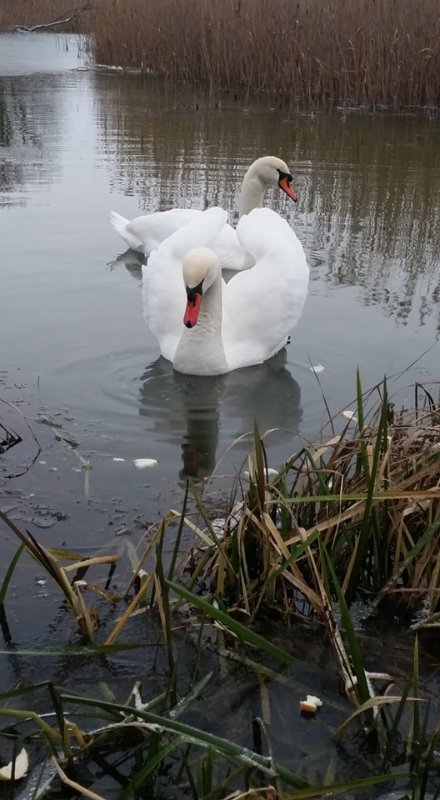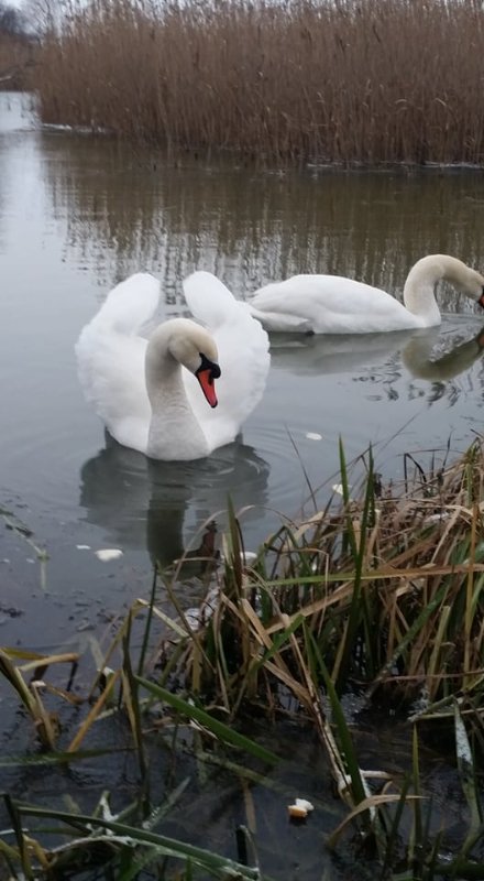 Красень-лебідь, який плавав тут в очереті з лебідкою, вже кілька років облюбував це місце і не боявся людей. Був довірливим, підпливав близько до берега, бо птахів постійно підгодовували.