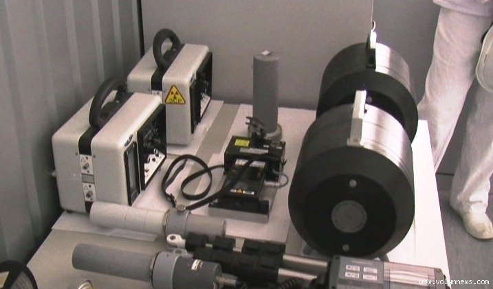 Начальник цеху радіаційної безпеки демонструє декілька пристроїв, які використовують дозиметристи. Доволі громіздкий пристрій у парафіновій оболонці, що вимірює потужність дози нейтронів. Її вимірюють здебільшого на працюючому енергоблоці, у визначених місцях. Демонструють також компресор, що бере повітря з робочої зони, насаджує на фільтр, після чого роблять вимірювання та висновок про можливість здійснення робіт та необхідність використання засобів захисту органів дихання (респіраторів).