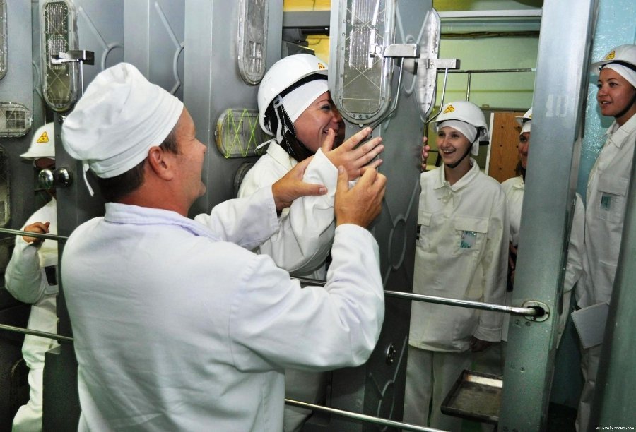 Останній інструктаж щодо заходів безпеки здійснює провідний інженер з експлуатації обладнання РАЕС Олександр Валигін. Він пояснює, що обладнання перебуває під дією радіації, кислот, лугів, тому руками нічого чіпати не можна. Предмети, які впали на підлогу, потрібно під час виходу перевірити за допомогою пристрою дозиметричного контролю. Приміщення енергоблоку – це, здебільшого, система коридорів, трубопровідних коридорів, технічних приміщень та обладнання, яке забезпечує роботу енергоблоку. Металеві двері у цих приміщеннях схожі на двері велетенських сейфів.