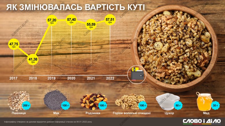 У 2017 році така порція різдвяної куті коштувала 47,75 грн, у 2018 році – 41,38 грн.