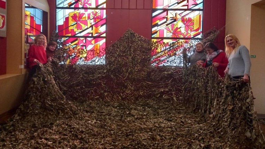 Маскувальну сітку довжиною 47 метрів музейниці почали плести в грудні минулого року. У переддень Різдва таке камуфляжне покриття доїхало на передову до військових.