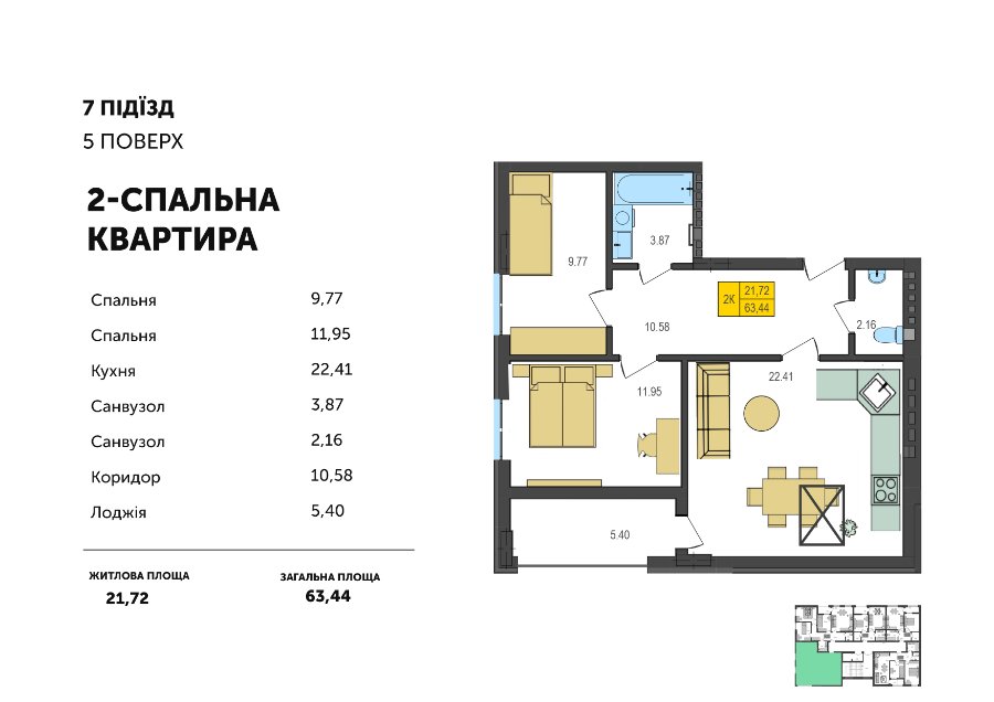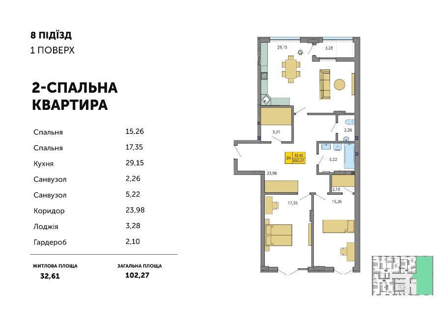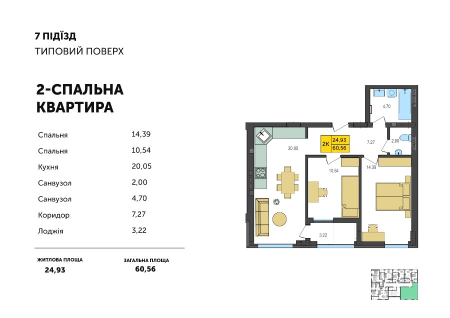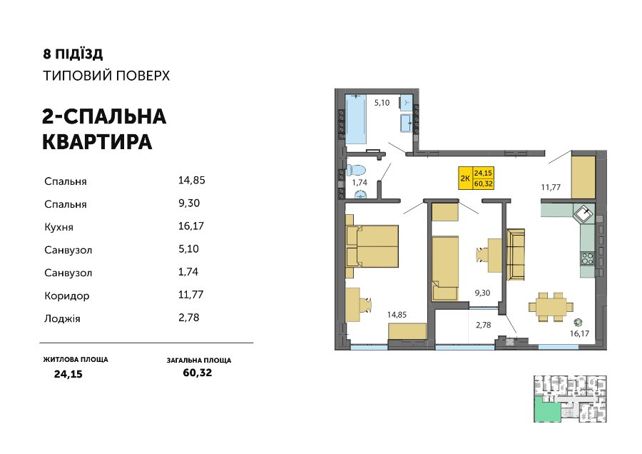 “Святкові квартири”: із 1 січня запропонували знижену ціну 18 900 грн/м2 на квартири з двома спальнями площею 60,32 м2.