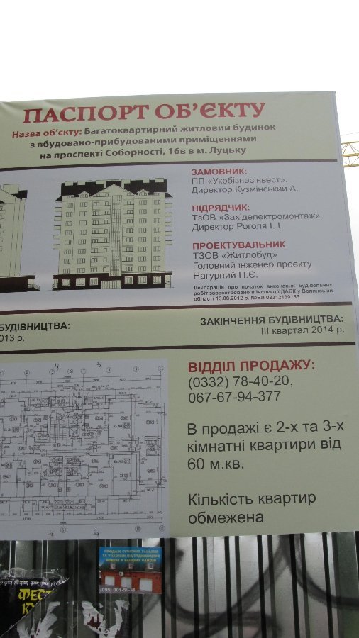 Окрім цього, за словами начальника управління, підприємцем-забудовником було зібрано цілий пакет необхідних документів. Зокрема: технічні умови на приєднання до електричних мереж, каналізування та водопостачання від КП «Луцькводоканал» та інші. Проектну документацію розробляло ТзОВ «Житлобуд».