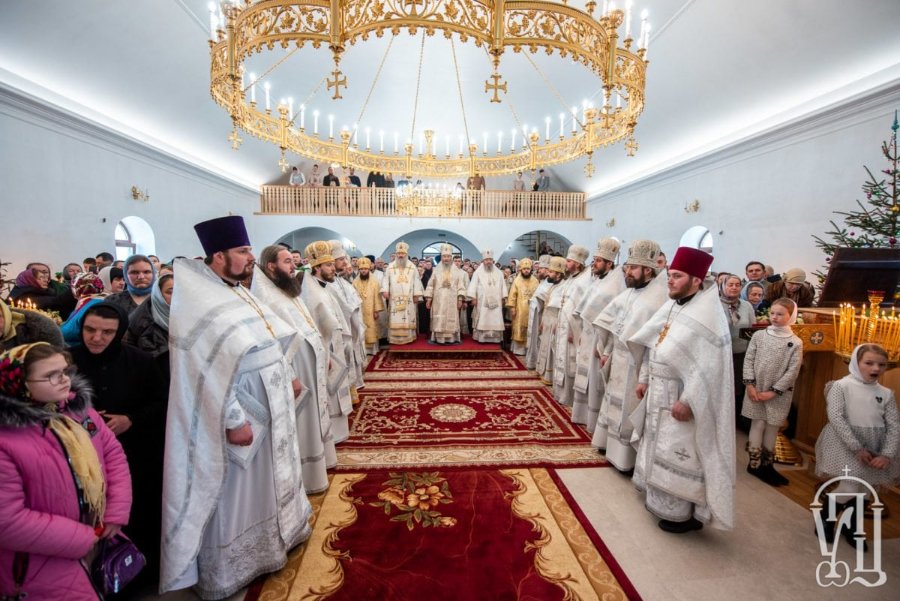 Наприкінці богослужіння Предстоятель та священнослужителі звершили чин славлення Різдва Христового.