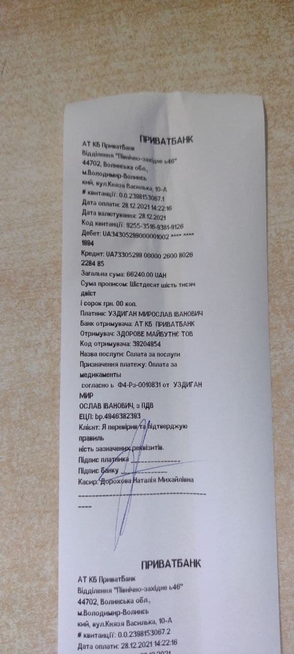 Карта Приватбанку 5168 7554 7183 3240 Уздиган Світлана Володимирівна (дружина)