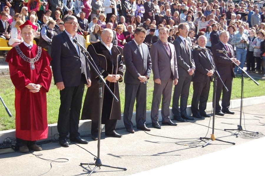 Розпочалися урочистості з проголошення відкриття церемонії ректором СНУ Ігорем Коцаном та духовного освячення першокурсників капеланами університету отцями Віктором та Михайлом.