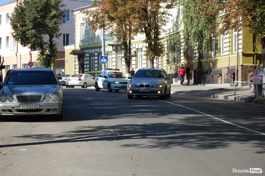 Окрім того, вже на вулиці Винниченка водій супроводжуючого процесію автомобілю ДПС, спочатку проїхавши декілька метрів біля під’їзду до приміщення прокуратури Волині, «здав» трішки назад, щоб пропустити автомобіль від установи.