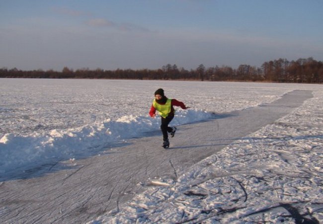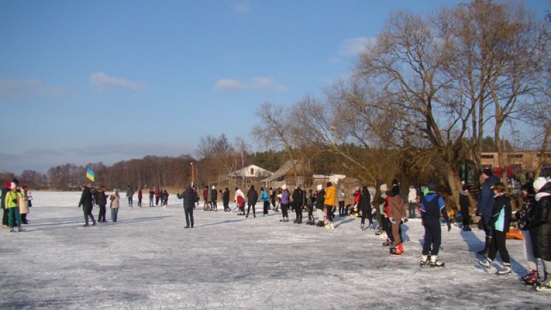 Активісти громадської організації смт Шацьк «Шаковель» створили на одному з найпопулярніших у селищі озер – Великому Чорному – чудовий каток, а 12 січня там вперше організували змагання з бігу на ковзанах.