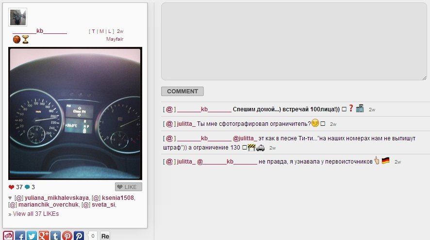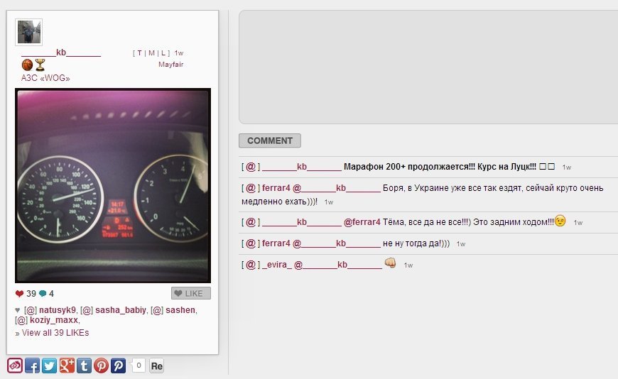 У коментарях під фото Борис Королюк пише: «Поспішаю додому ...) зустрічай 100лиця!)) Ет як у пісні Ти-ти ... «На наших номерах нам не випишуть штраф»)) а обмеження 130».