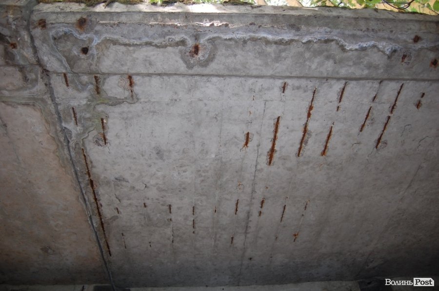 «Арматура має бути вся захищена. Якщо вона виступає, то потрапляє вода і йде корозія. Бетон погано працює на розтяг і вилущується», - пояснив Олександр Андрійчук.