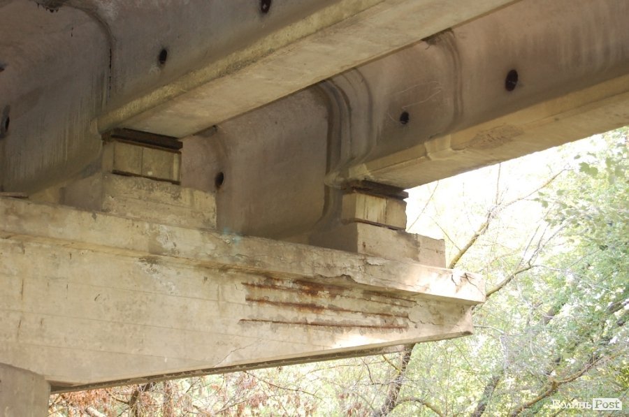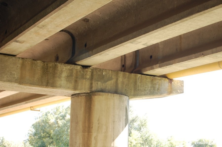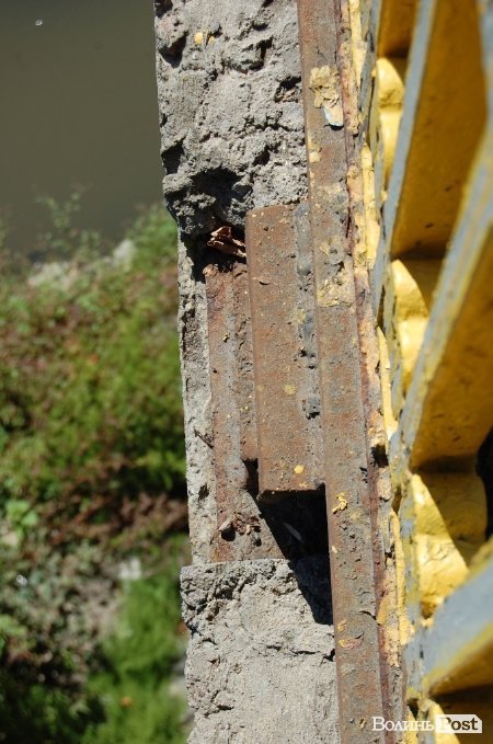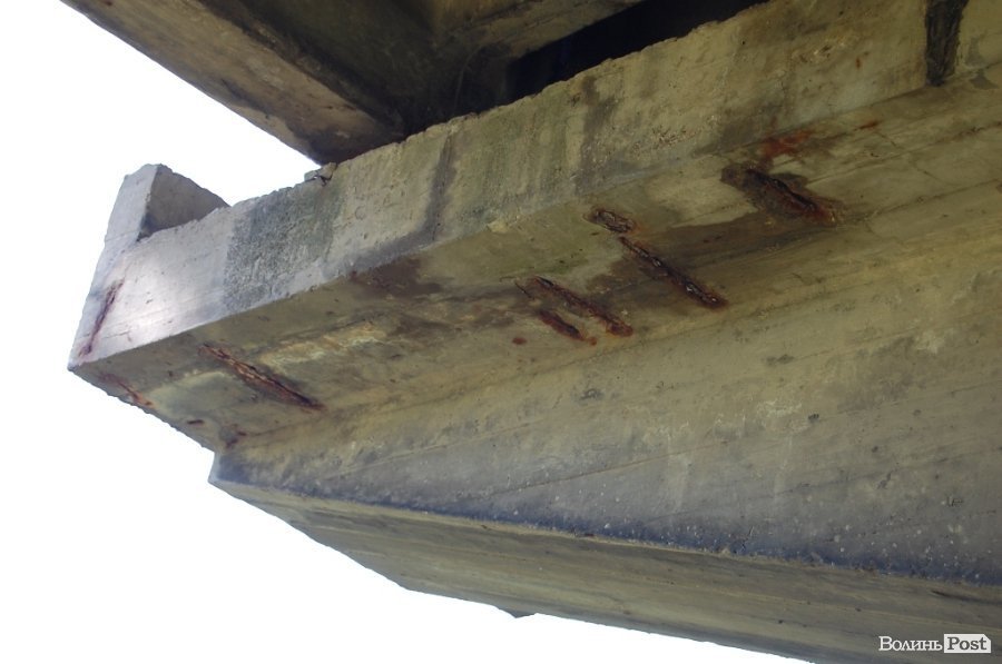 Тим часом бетон з арматури луцьких мостів починає поступово відлущуватися, що, як стверджує фахівець, є недопустимим.