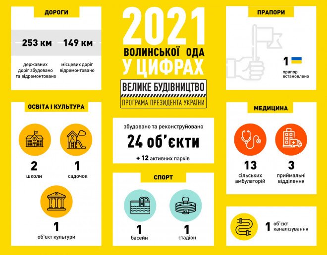 Освіта, медицина, спорт, культура, дороги – усі ці галузі розбудовувались на Волині в 2021 році в рамках програми Президента України Володимира Зеленського «Великого будівництво».