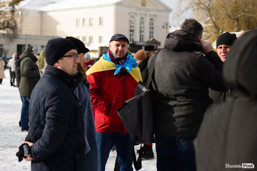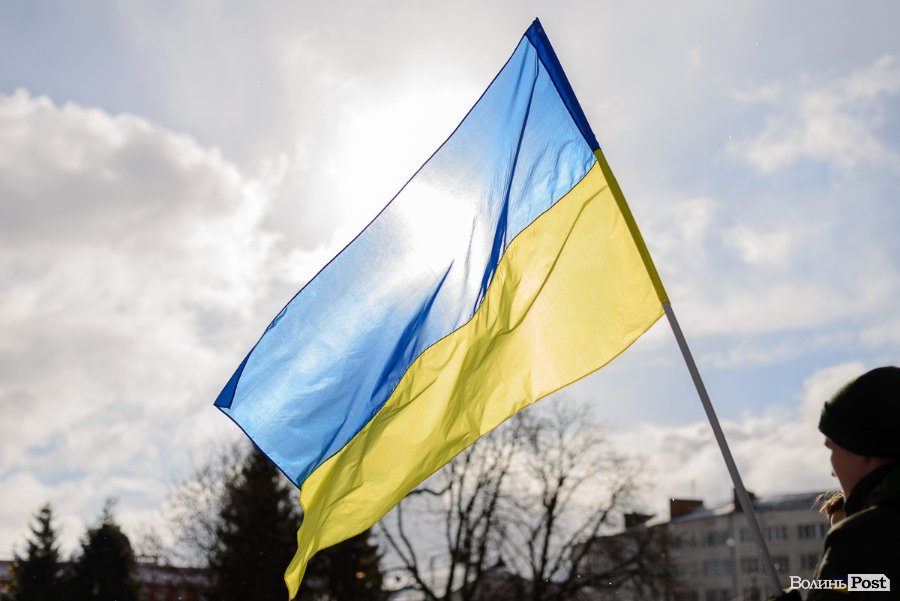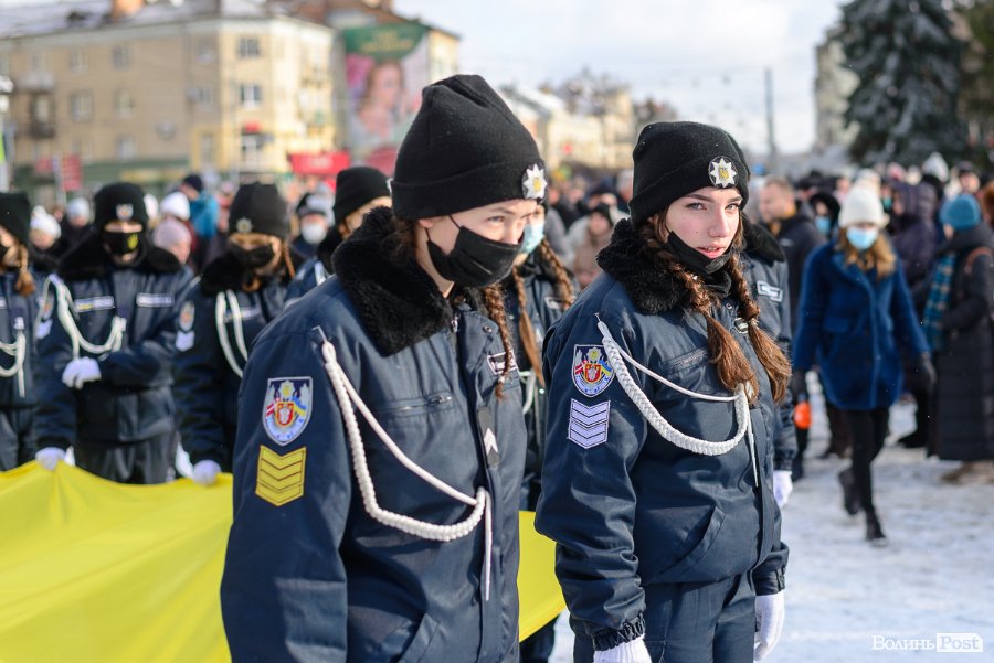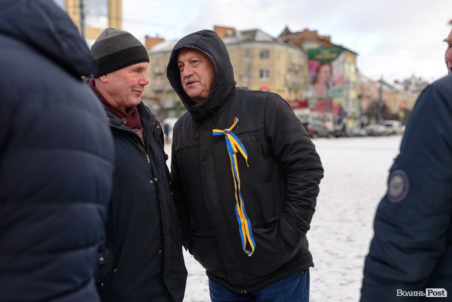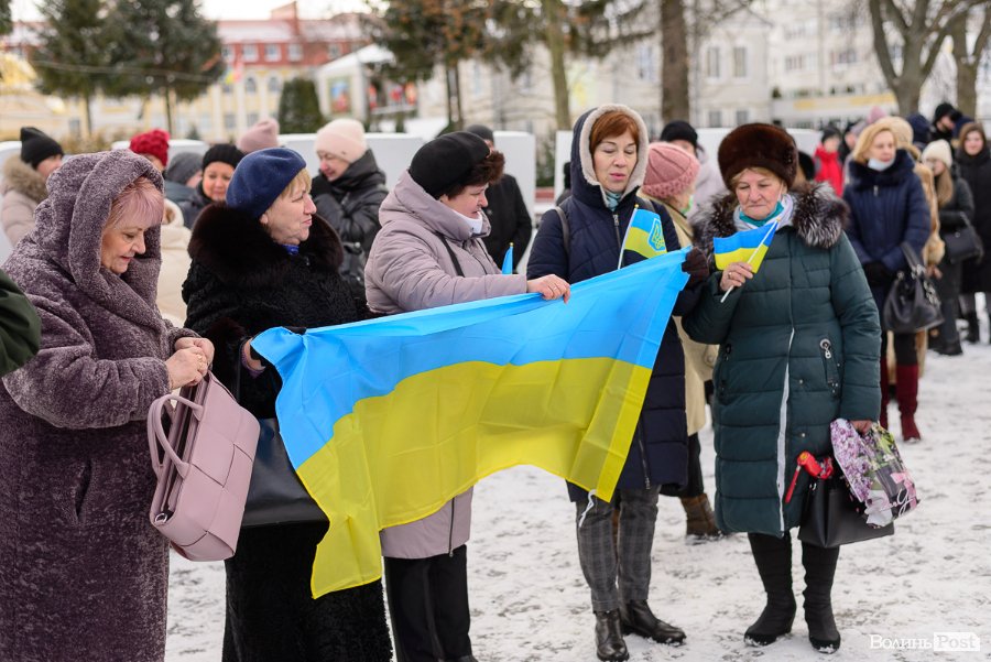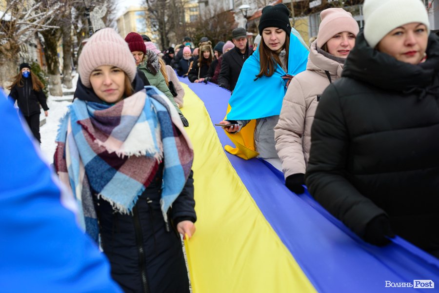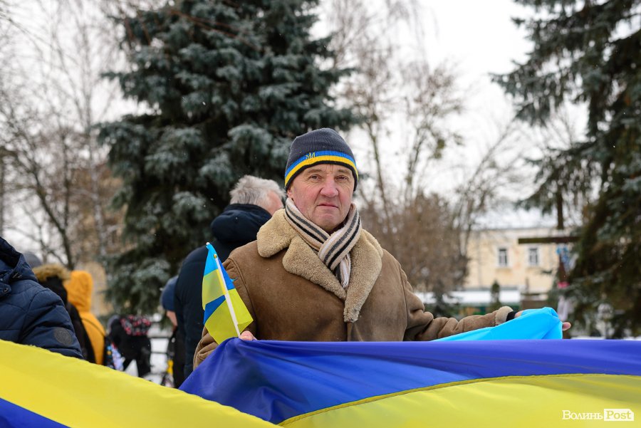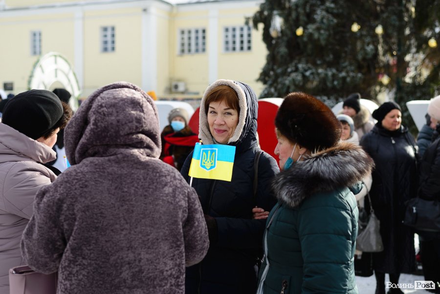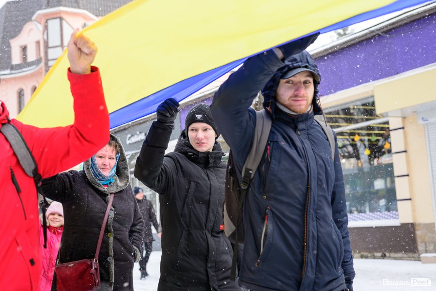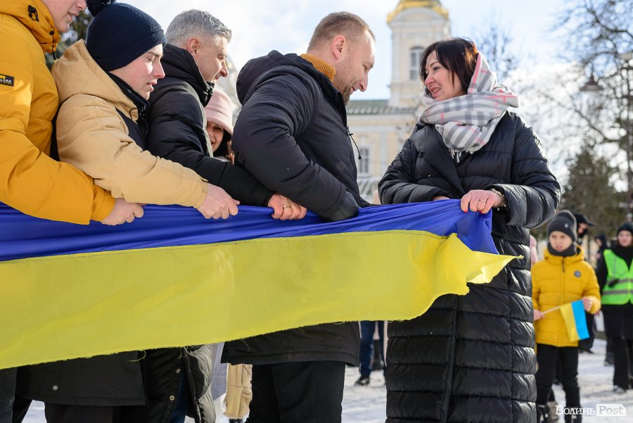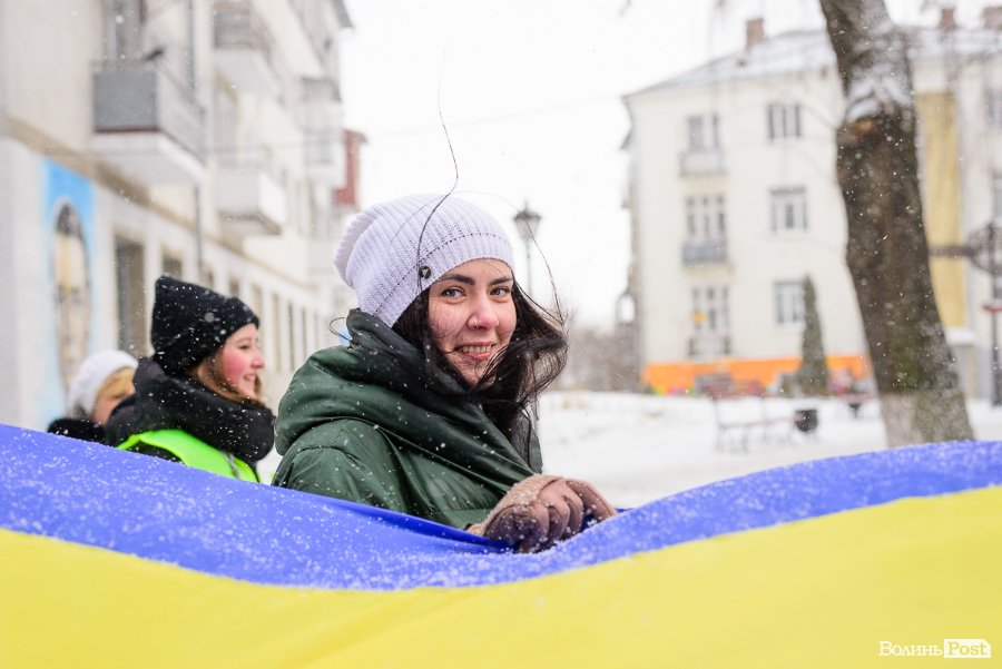 Сотні лучан сформували ланцюг за допомогою 200-метрового прапора від Театрального майдану і майже до кінця вулиці Лесі Українки.
